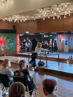 Das sind tatsächlich Geschichten, die sich so – mehr oder weniger, in der Stadthalle ereignet haben. Flankiert wurden die Geschichten von einem Besuch des imposanten Maschinenraumes und von einem bisher kaum gesehenen „Lehrfilm“ mit Infos über die Stadthalle. Besonders eindrucksvoll war auch die Tanzdarbietung auf der geschlossenen Bühne. Hier tanzten acht junge Lübbecker Tänzerinnen ihre Gedanken zum Thema Heimat. Das war toll getanzt: sehr stark, sehr offen und traf viele ins Herz.