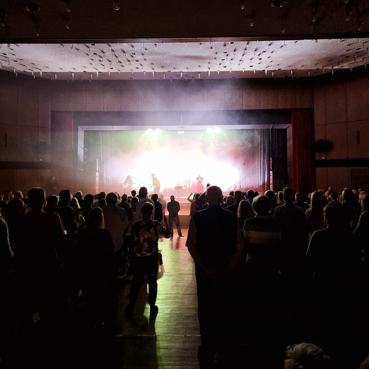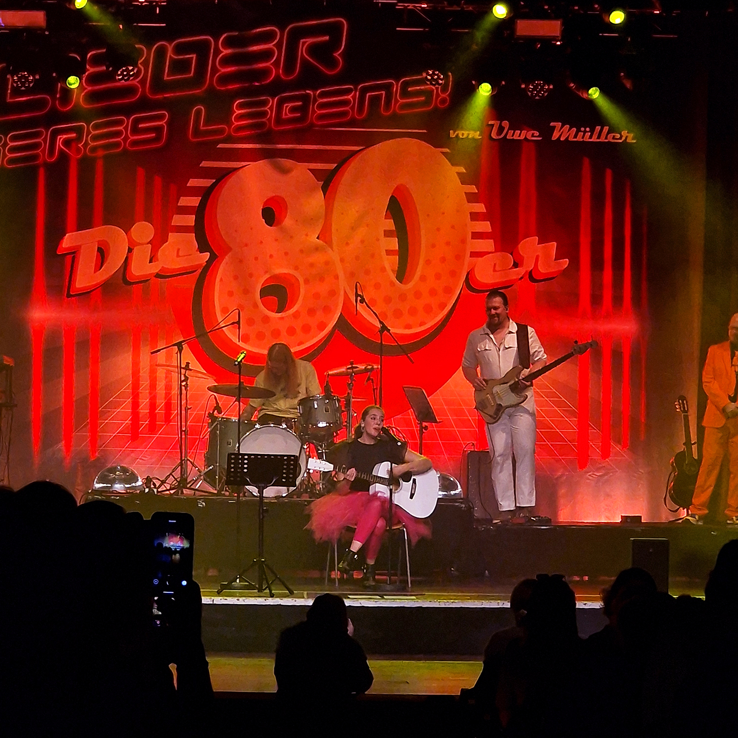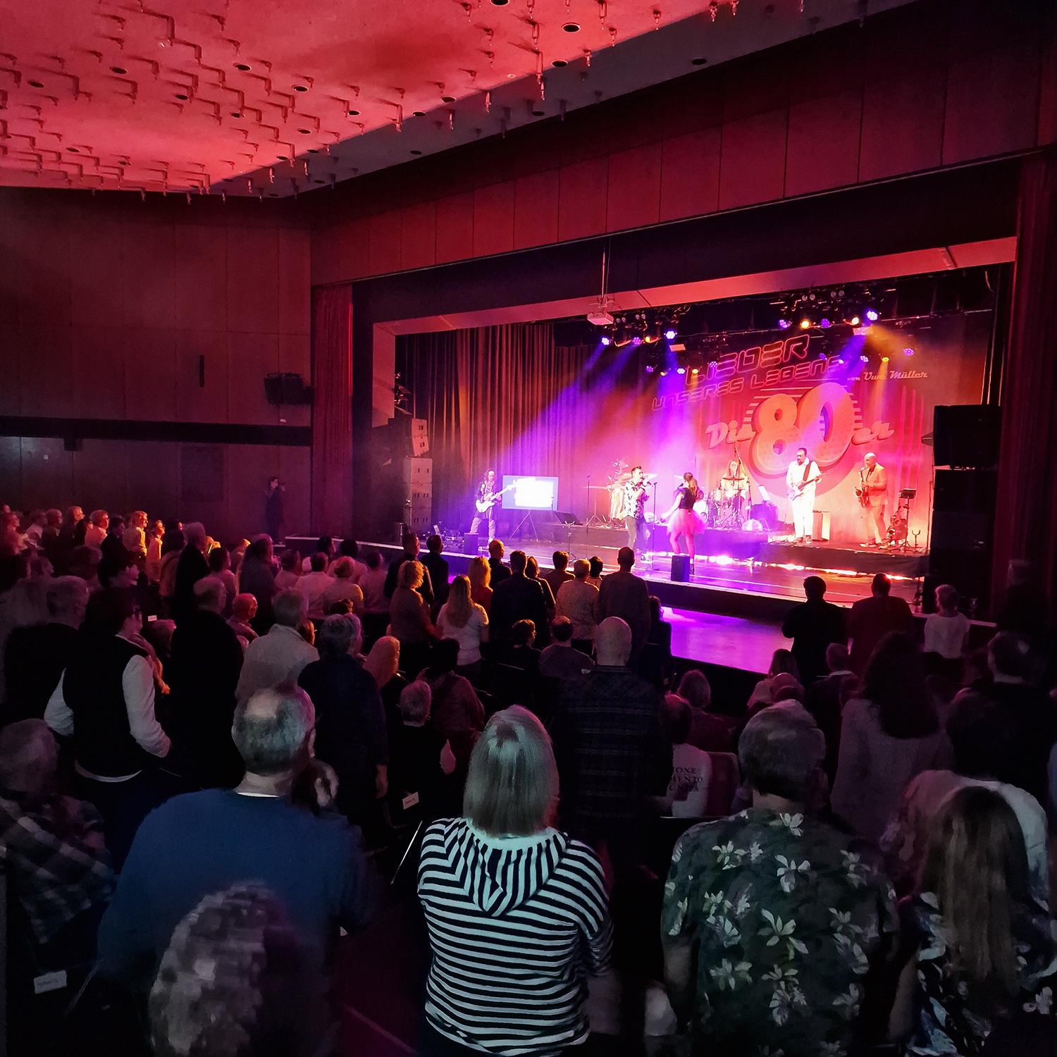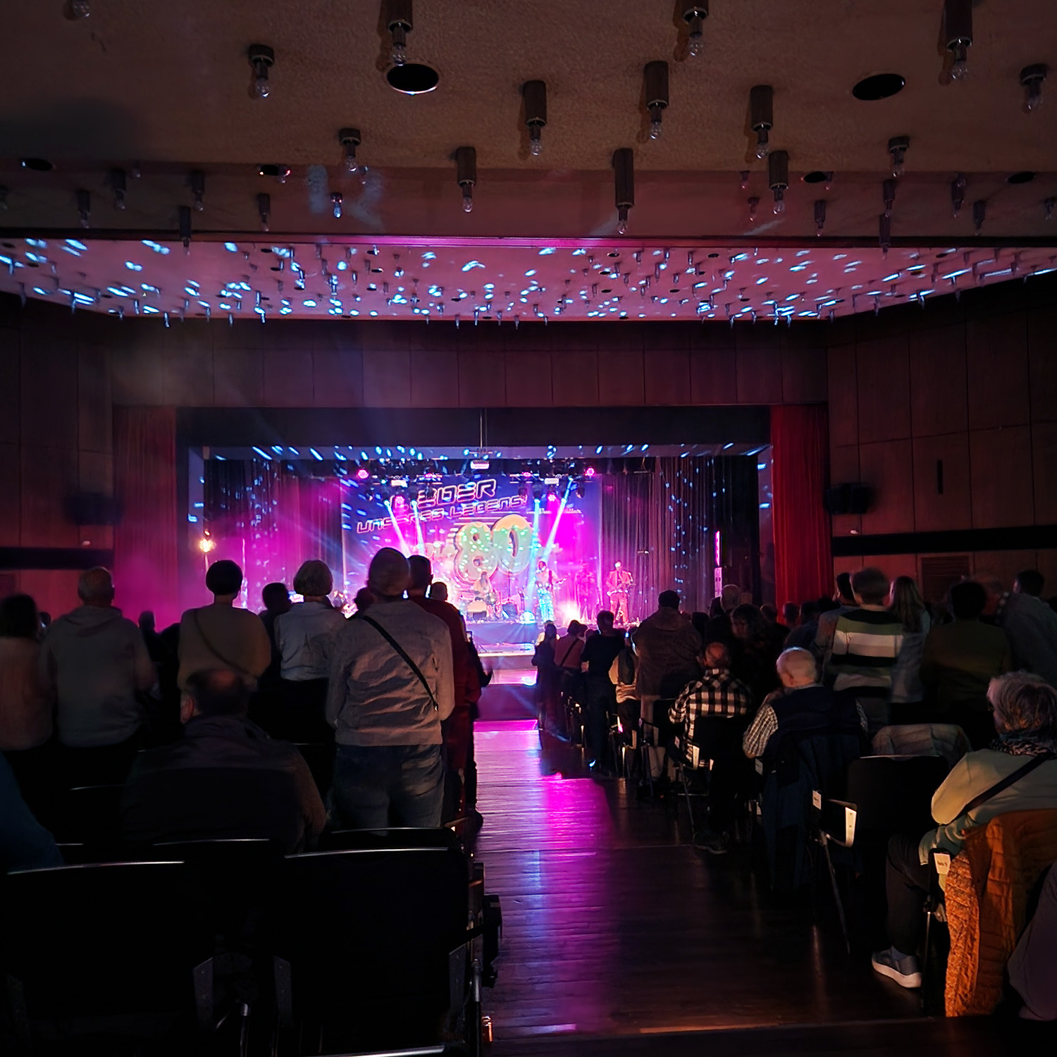 Zwei Stunden lang wurde in Erinnerungen an die Popkultur der 80er geschwelgt, Anekdoten aus der Lübbecker Clubszene geteilt, und natürlich ganz viel getanzt, gegroovt und mitgesungen. „Africa“ von Toto und „Sweet Dreams“ von Eurythmics folgten auf „I Wanna Dance With Somebody“ von Whitney Houston und Hits der Neuen Deutschen Welle wie „Ich will Spaß“ oder „Major Tom“. Ruhigere Töne wurden mit Nicoles Eurovision-Erfolg „Ein bisschen Frieden“ angestimmt, während Nina Hagens Punk-Hit „TV Glotzer“ die Stadthalle wortwörtlich zum Beben brachte. Egal durch welches Genre die Reise gerade führte, Uwe Müllers Band beeindruckte mit fantastischen Stimmen und virtuosen Instrumentalisten von Schlagzeug bis Saxophon.